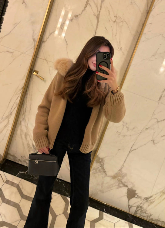 Fourrure de renard authentique pour un luxe absolu, ou fausse fourrure somptueuse alliant éthique et élégance. Le col amovible se retire d'un simple geste : transformez votre style instantanément ou entretenez-le sans contrainte. Du brunch décontracté au dîner sophistiqué, cette polyvalence fait de chaque tenue une réussite.